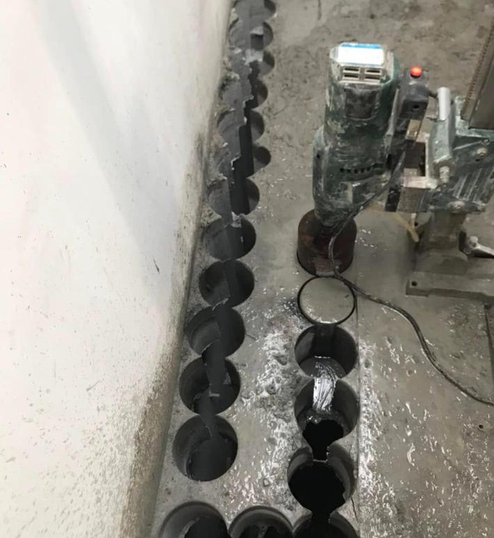 - Cắt tường, sàn bằng máy cắt chuyên dụng: áp dụng cho không gian hẹp